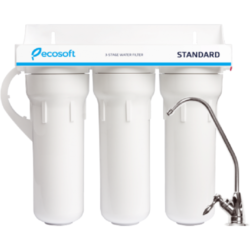 Проточный трёхступенчатый фильтр Ecosoft Standard с отдельным краном недорогой и эффективный путь приготовления питьевой воды.