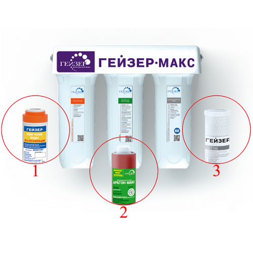 Проточный фильтр для воды Гейзер МаксВысокая эффективность удаления примесей (соли жесткости, желе..